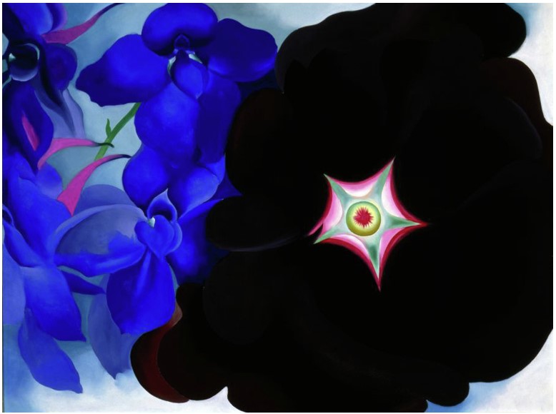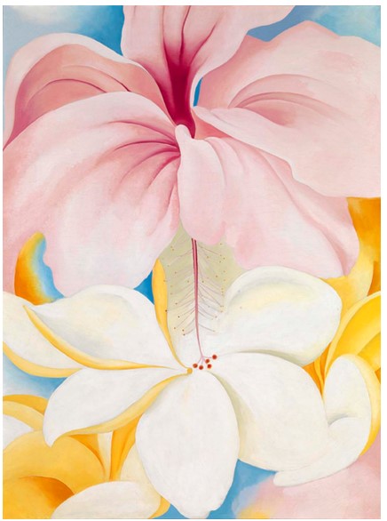 Georgia O’Keefe (1887-1986) is renowned for her flower paintings and during her lifetime became an American icon. However, in a career spanning more than seven decades her work encompassed a variety of subject matter, ranging from the purely abstract to detailed representation. Her life story and career as an artist is very interesting; you can read and see more about her here: https://www.okeeffemuseum.org/about-georgia-okeeffe/