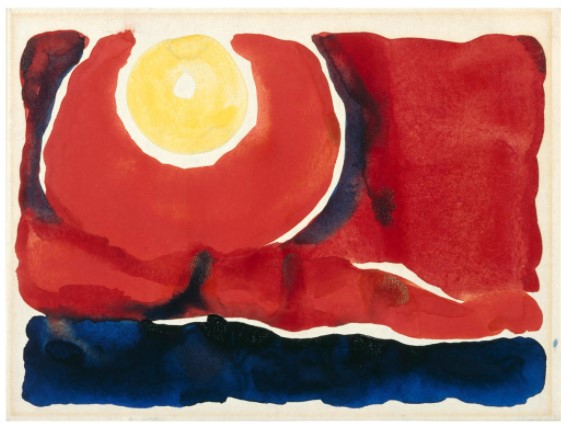 I first saw Georgia O’Keefe’s art at a large retrospective of her work at the Hayward Gallery in London in 1993. I must admit, it was not her large flower paintings that made the biggest impression on me, but her small watercolours that she made as a young artist. However, the whole exhibition had me inspired – her vibrant watercolours, sensuous charcoal abstractions, dramatic cityscapes at night, huge glorious flowers and vast desert scenes of New Mexico. I bought the catalogue which has been well used as a resource for myself and my students over the years.