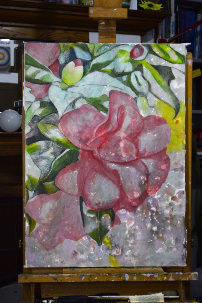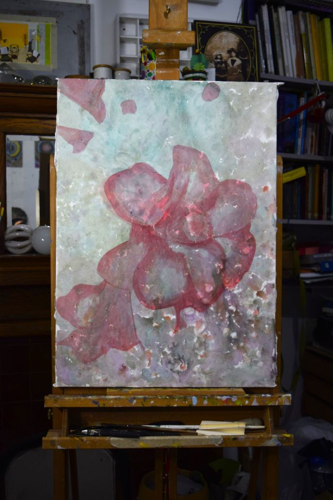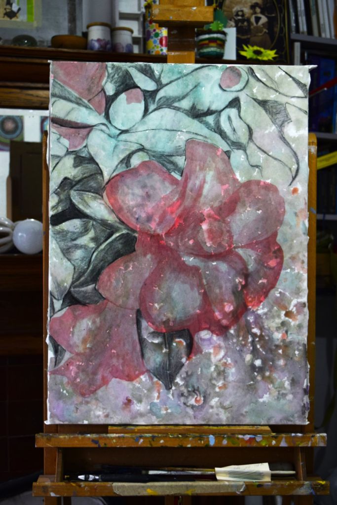 To try and work a bit faster and looser, and to experiment more with various art media like Eileen Agar (see my previous post) I have started six new flower paintings, trying to work back-and-for between them. This is in the hope that I don’t become to caught up in the detail and overwork them – it is already proving difficult for me! – you can see the problems I’ve had with my Cucumber Flower painting in my previous post. Here are some slideshows of the other five paintings so far: