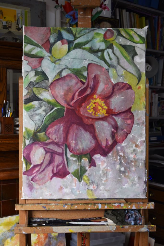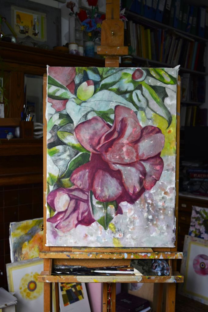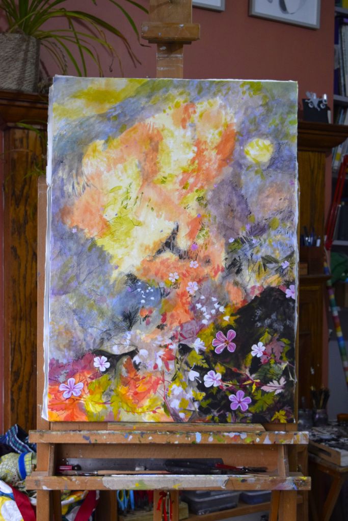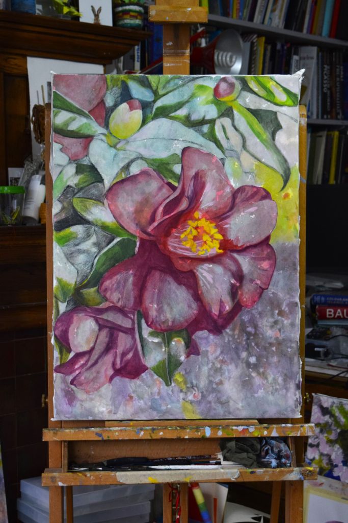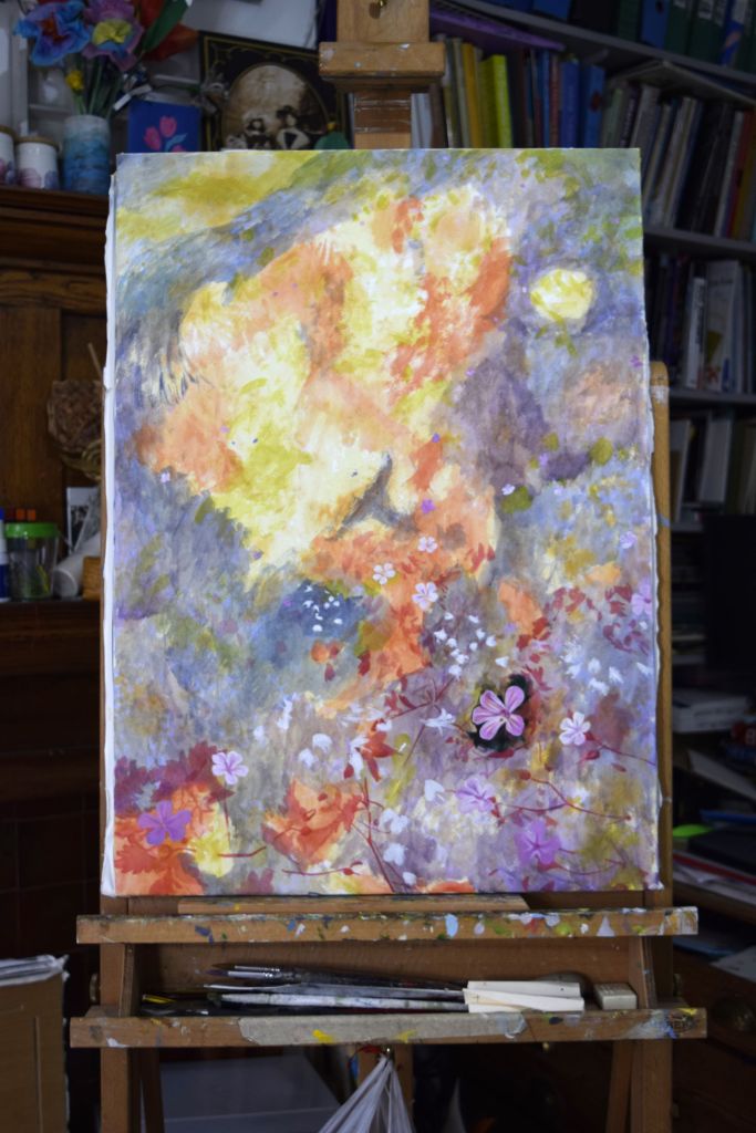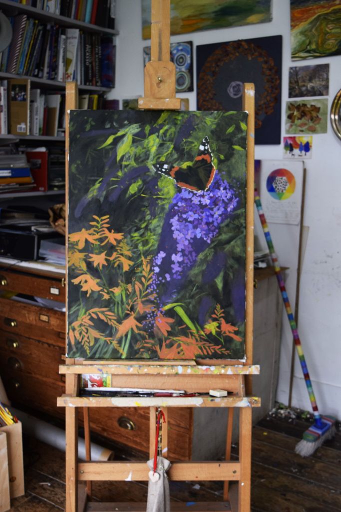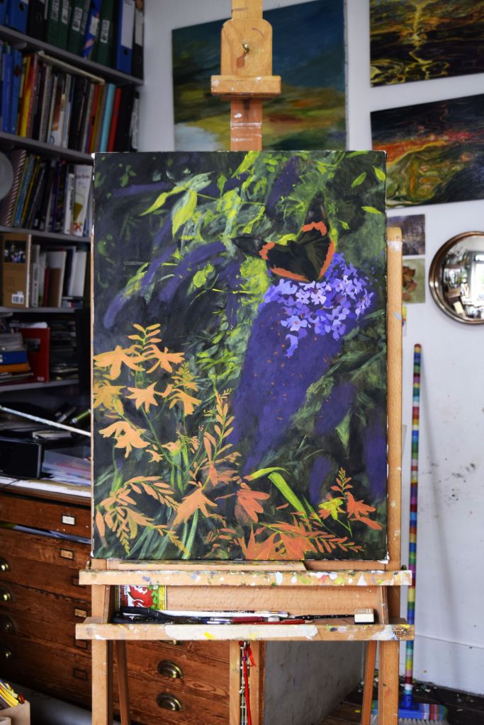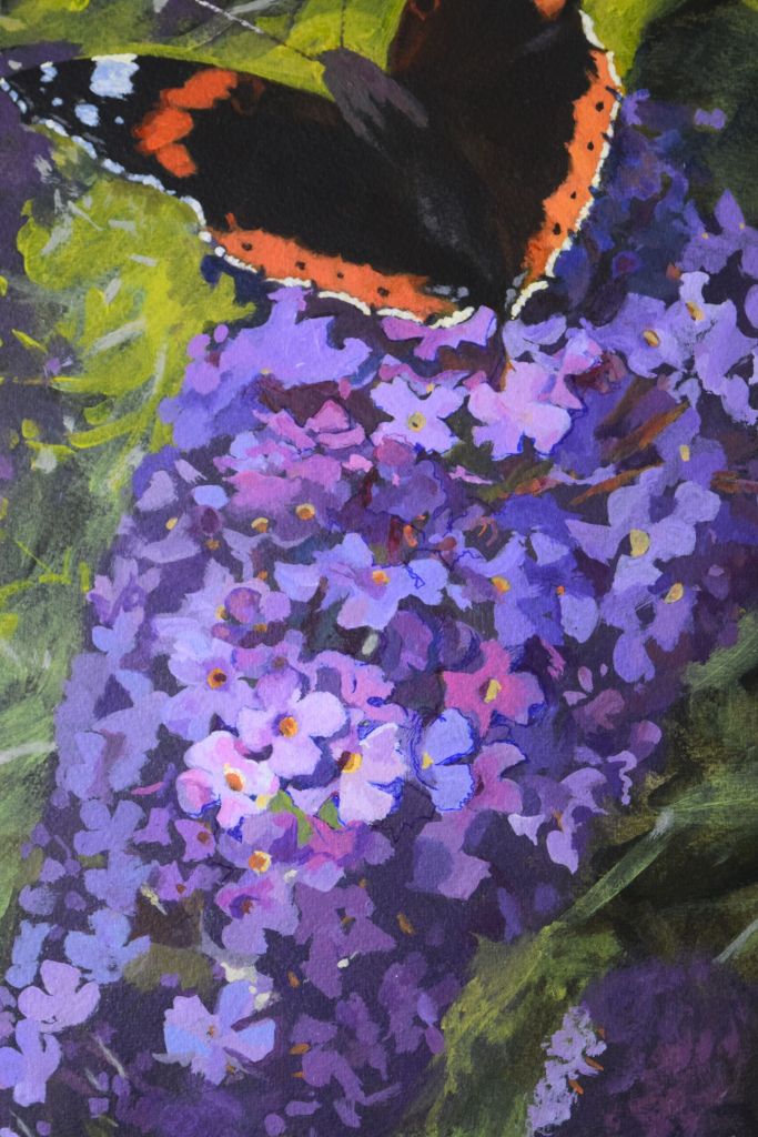 Butterfly Conservation – are on a mission for us all to take bold, imaginative steps to conserve butterflies and moths, helping to restore biodiversity, mitigate the climate crisis, and start to rebuild the vital kinship between people and the natural world. For this reason I have chosen to support them with this painting – a few of my young art club members were very keen for me to include butterflies in my flower paintings and it is so important for us to work towards protecting the natural environment so that future generations can take pleasure in all the joys of nature that we so often taken for granted.