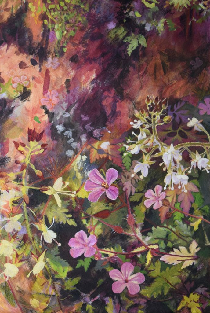 Once completed, I will be selling Limited Edition Fine Art Giclée Prints of my Herb Robert and Enchanter’s Nightshade painting to support the independent environmental charity Greenpeace UK. I have been a supporter of Greenpeace for over two decades and am hugely grateful that such organisations exist – peacefully campaigning against damage to our natural environment. Established in 1971, I shared their 50th ‘birth year’, so it feels extra special to support this charity with my 50 Flowers project. Herb Robert also feels like an apt flower to have chosen as one of the important founding members of Greenpeace was Robert (Bob) Hunter. You can read about the exciting beginnings of Greenpeace here.